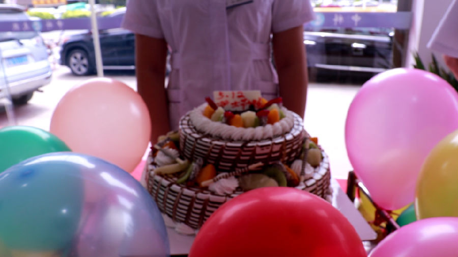 推过来的蛋糕,有感谢的香味,感谢她们关爱、感谢她们的真情,感谢她们用青春换来患者的健康。